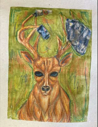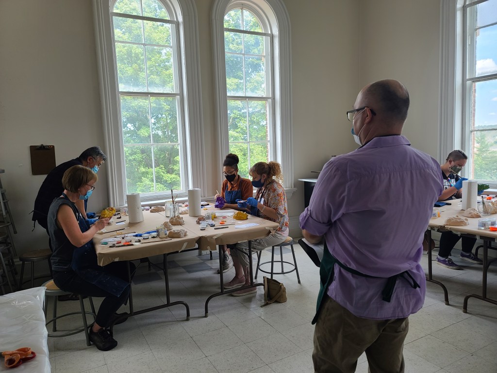 This summer two of us got to work with Mateo and David to help prepare for their show. Carrie Summerford and I helped Mateo and David make plaster leaves for their sculptures as well as silicone masks for David’s puppet workshop, the second of which will be happening on February 5th, 2022. We also helped them both install the exhibit, so to get to see them talk about their work in front of a crowd in really fulfilling.