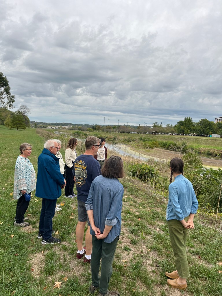 After becoming acquainted with the exhibition, Aubrey led us on a walk down to the river, prompting everyone to keep an eye out for varieties of river vegetation. Due to the recent drought, the river was much lower than normal, which elicited a conversation about how water supports both wildlife and humans. Many beavers, for instance, were forced to look for homes elsewhere, as the river couldn’t sustain their dens.