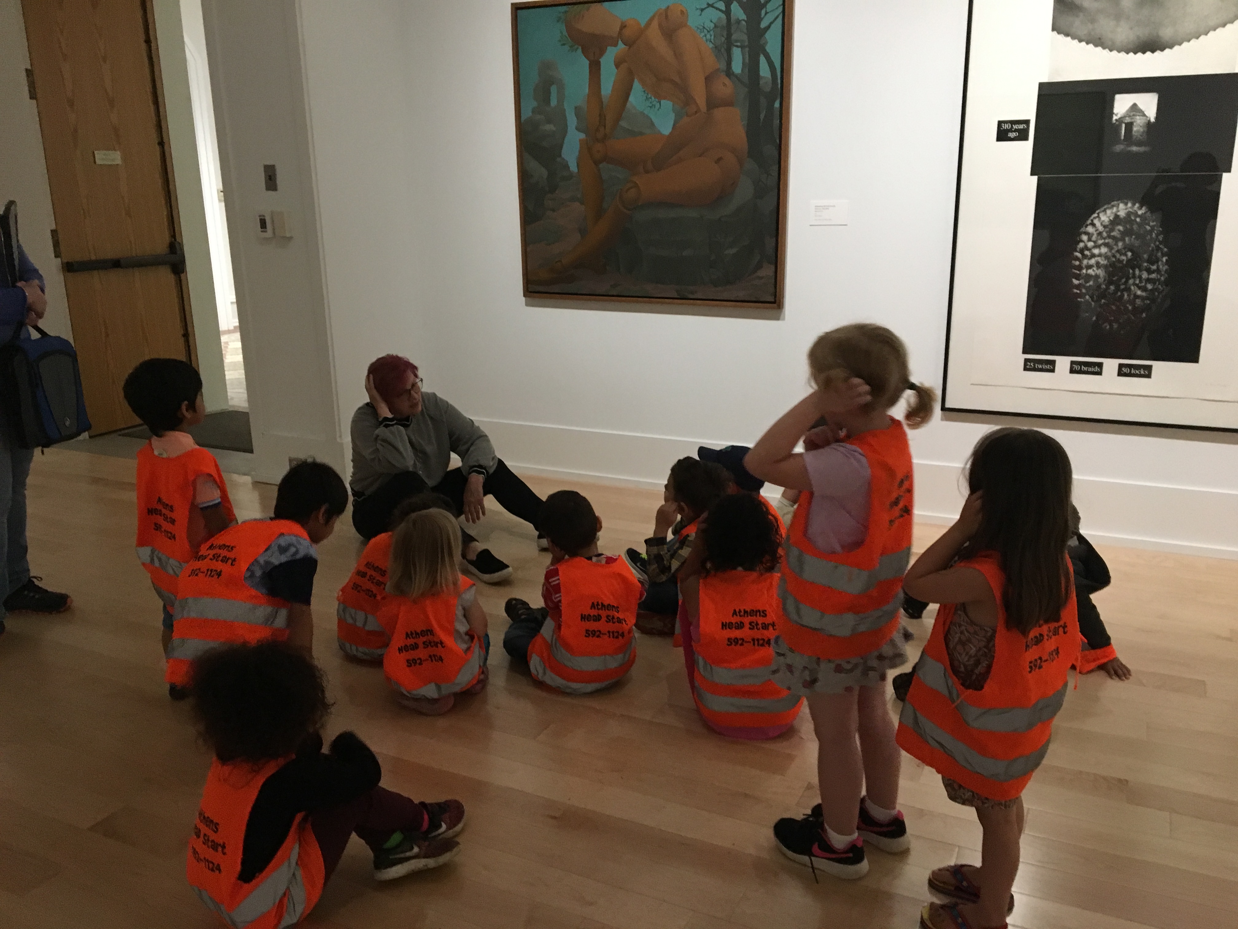 Lisa leads Athens Head Start in “taking the pose” as they examine paintings on view this summer. As Educational Programs Coordinator, Lisa will refocus her work at the Museum this coming academic year to expand and strengthen our visual literacy programming.