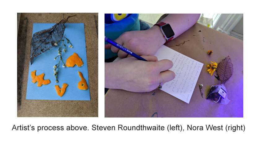 The artists arranged their compositions, waited for the Ultraviolet lights to make their magic, and then developed their cyanotypes with water. Each artist had so many ideas, and I had great conversations with the participants about art and art-making.