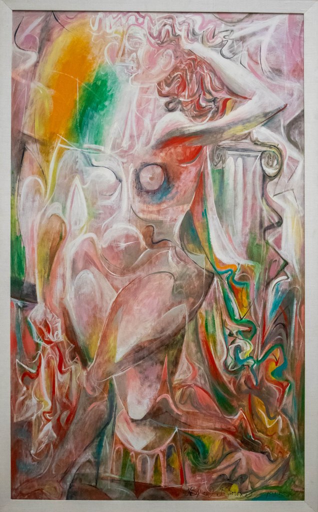 Byron Browne was a prominent figure in the modernist movement and one of the founders of American Abstract Artists in New York City. The group’s concentration was on making art in response to important world events such as the depression or scientific research being done such as Einstein’s theory of relativity. He was a trained realist before he became an abstract painter. After leaving realism behind, he destroyed all his old work and starting viewing abstraction as an “extension of the physical world, rather than generated by spirituality.” His new work included energetic and gestural brushstrokes.