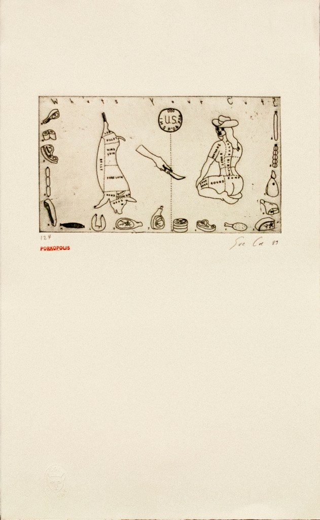 Originally born in England, Sue Coe grew up down the street from a slaughterhouse. This spurred her passion for animal rights from a young age. Coe moved to the United States to become an illustrator for The New York Times in 1972 and stunned her supervisor with her first illustration of a duck as the subject.
