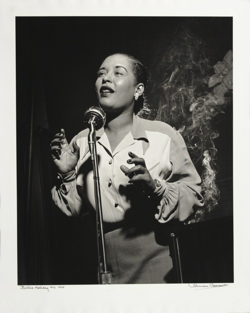 Herman Leonard is remembered as one of the best jazz photographers of all time. In the beginning of his career post-graduation from Ohio University, Leonard would take promotional photos for the jazz clubs in New York City in exchange for entry. There he photographed jazz legends such as Billie Holiday, Duke Ellington, Louis Armstrong, and more, as they were also starting their careers. This photograph of Billie Holiday encapsulates her as a performer while the smoke in the background alludes to the aesthetic of the jazz clubs at the time.