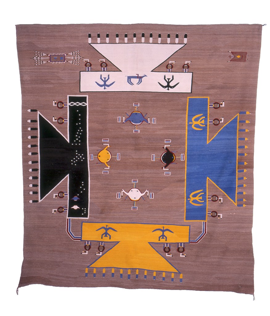 See a similar weaving displayed in our galleries in the new exhibition Night Skies: Navajo Textiles Depicting Sandpaintings. Find more information about this exhibition on our website.
