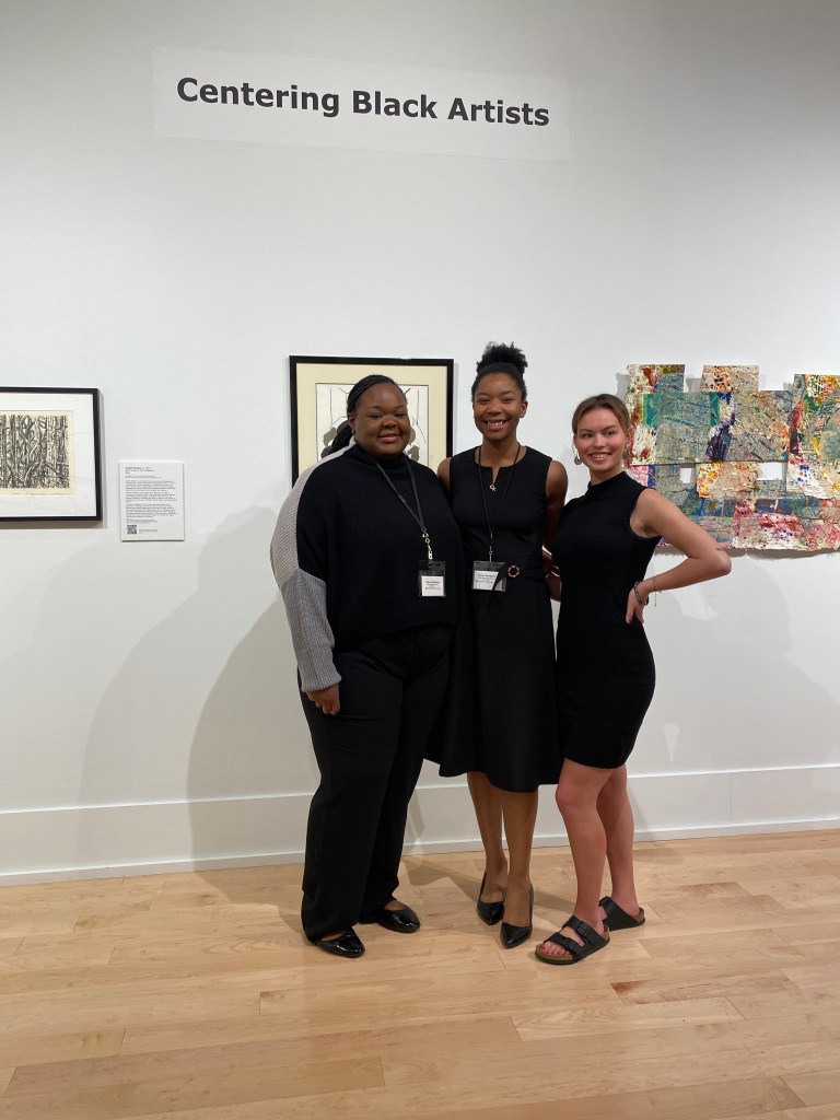 Dayna Shoulders (BS ’23), Odessa Robinson (BS ’23), and Jailei Maas (’24) facilitated the first “Talk About It” program, with a focus on Black women artists represented in the Centering Black Artists exhibition. Members of the University community, some visiting KMA for the first time, joined students and staff for a thought-provoking discussion and consideration of the potential for growth in the role of the Museum on campus.