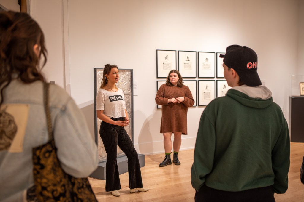 In May, Rufus visited the Museum as part of programming with local elementary schools coordinated by the Southeast Hub of OhioSTEM and the Voinovich School of Leadership and Public Service. Our education student staff, including Graduate Assistant Hannah Moulen, and Jai and Emily, met with hundreds of schoolchildren. In June we were joined by returning staff member Campbell Hogue and she, Jai, and Emily provided tours and studio activities for Bobcat siblings during Bobcat Student Orientation.
